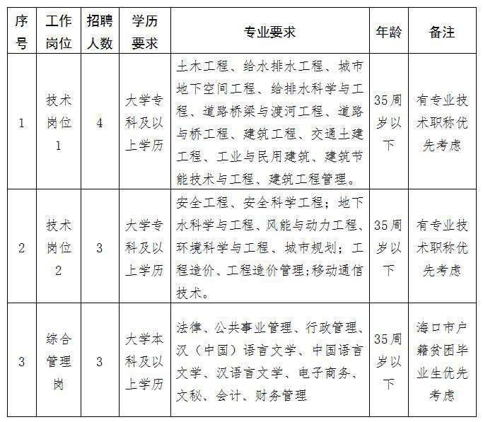 因工作需要,现海口市住房和城乡建设局面向社会招聘10名编外工作人员,现将有关事项公告如下: