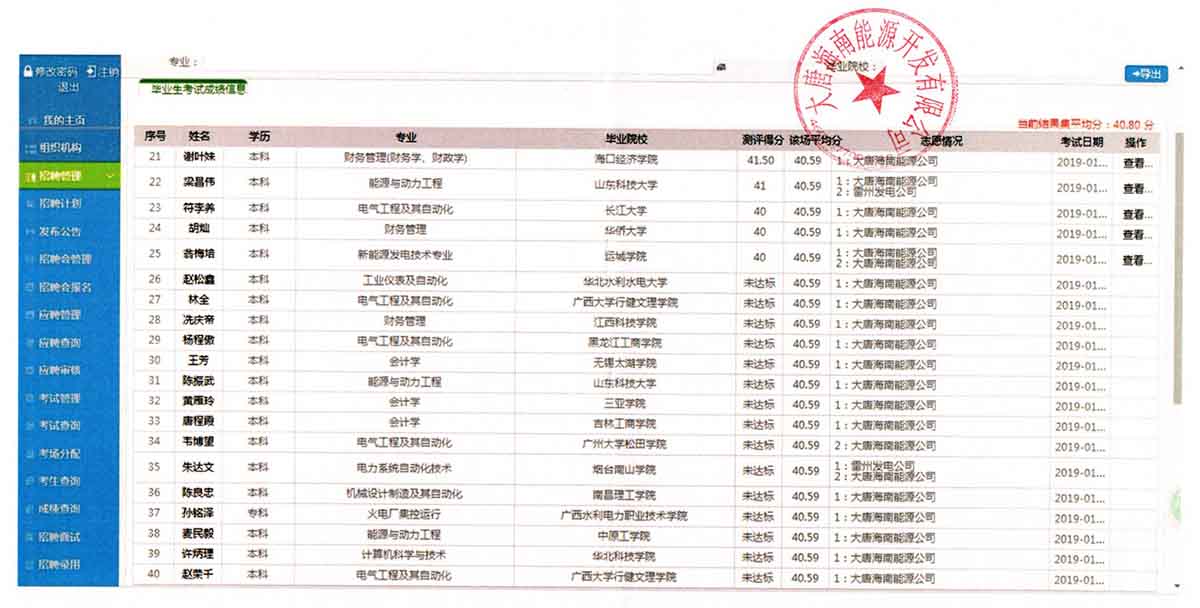 大唐海南能源开发有限公司本部2019届应届毕业生招聘上机考试成绩公示如下:
