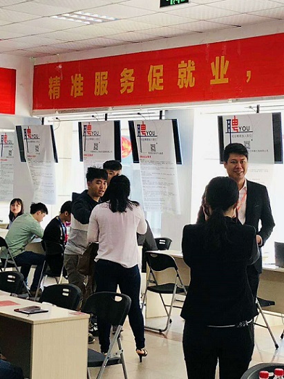 在招聘会现场,看到许多参加招聘的人员寻找自己喜欢的行业及岗位,共同走向就业之路。