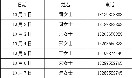 以下是国庆放假值班表: