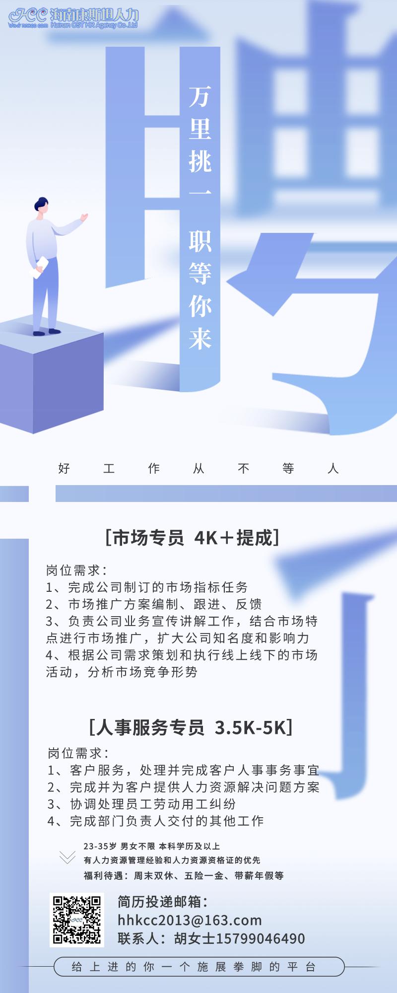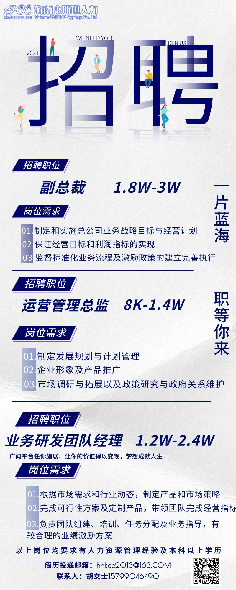 为了促进海南康斯坦人力的成功转型及人才梯队搭建与完善,我司在人才引进方面和专员的储备工作正在火热招聘中,如果您空有抱负而无处施展,海南康斯坦人力是个广阔的平台,这里能让你人尽其才,才尽其用,有梦想而致远方,广纳英才,“职”等你来。